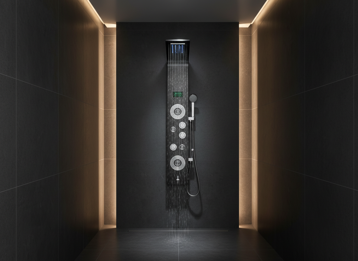 Upgrade your daily routine with a premium LED shower panel designed to deliver a true spa-level experience at home. Featuring six versatile water functions, this modern shower column combines rainfall, waterfall, massage jets, and more — all crafted in durable stainless steel with a sleek black nickel finish.